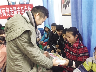 ▲ 志愿者给孩子们发礼物。