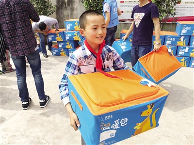 温暖包由壹基金筹集捐助,主要发给因灾致贫的农村儿童,包中书包、睡袋、安全应急包、鞋子、毛巾、绘图本、笔记本、洗漱用品包、美术盒套、T恤、雨衣、水杯、卡通娃娃等应急救灾物品一应俱全。