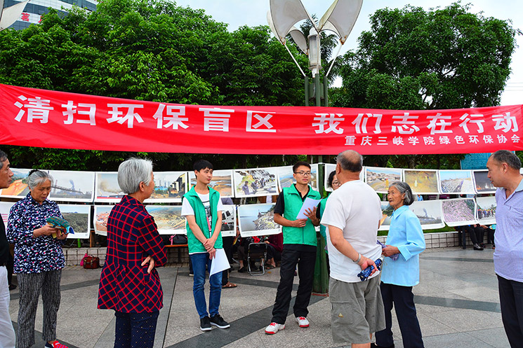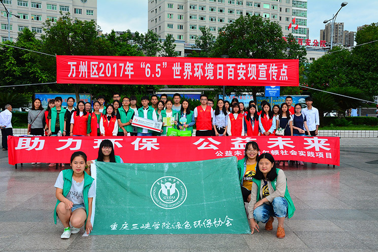 2017年6月5日,万州区五桥学府广场上洋溢着异常热烈的气息。一大群穿着绿色马甲的环保天使们在广场上格外出众,他们就是重庆三峡学院绿色环保协会的环保志愿者们。在6月5号这个特别的日子——世界环境日,他们聚集在一起,为“宣传6.5世界环境日,清扫环保盲区”献力。