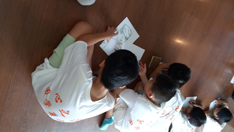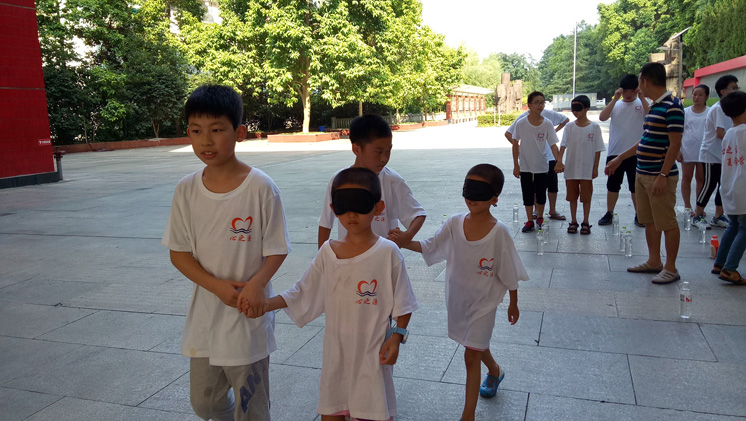 “信任之旅”将同学们带到户外,两人一组,一人蒙眼,一人做指路人,不能交谈。这个环节,最危险,最有趣,也暴露了最多问题。一个7岁的小女孩一直受各位哥哥姐姐的照顾,在做指路人的时候她最开始带的是一位年龄稍大的小姐姐,结果她自己并没有照顾小姐姐的意识,所以那位小姐姐跌倒了很多次。后来,老师将最小的一位小朋友交给她,她自己就开始有意识的学着哥哥姐姐照顾她的方式去照顾那位小朋友,意料之外的一次跌倒都没有。还有一位男生极度的缺乏安全感,他不愿跟着别人走,也不愿带着别人走。后面听査老师告诉我,他是一位问题少年,家庭环境比较复杂。十分遗憾的是不能参加后面的活动,不能见证他的改变。