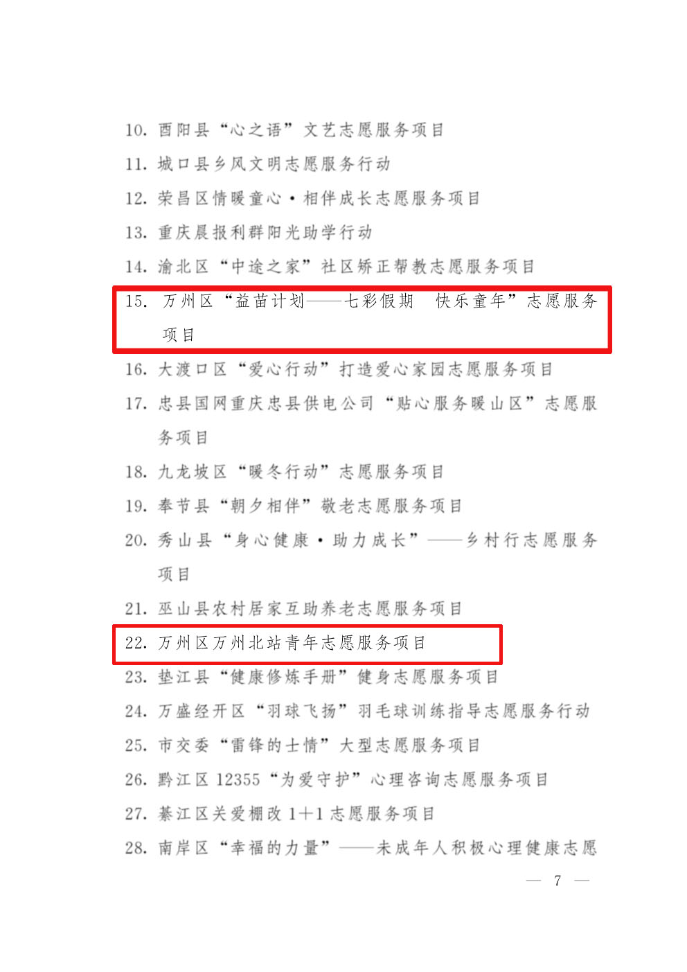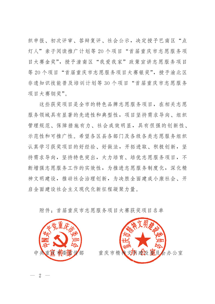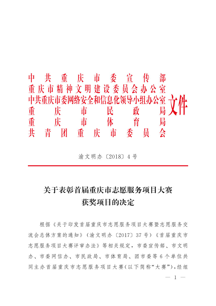 关于表彰首届重庆市志愿服务项目大赛获奖项目的决定