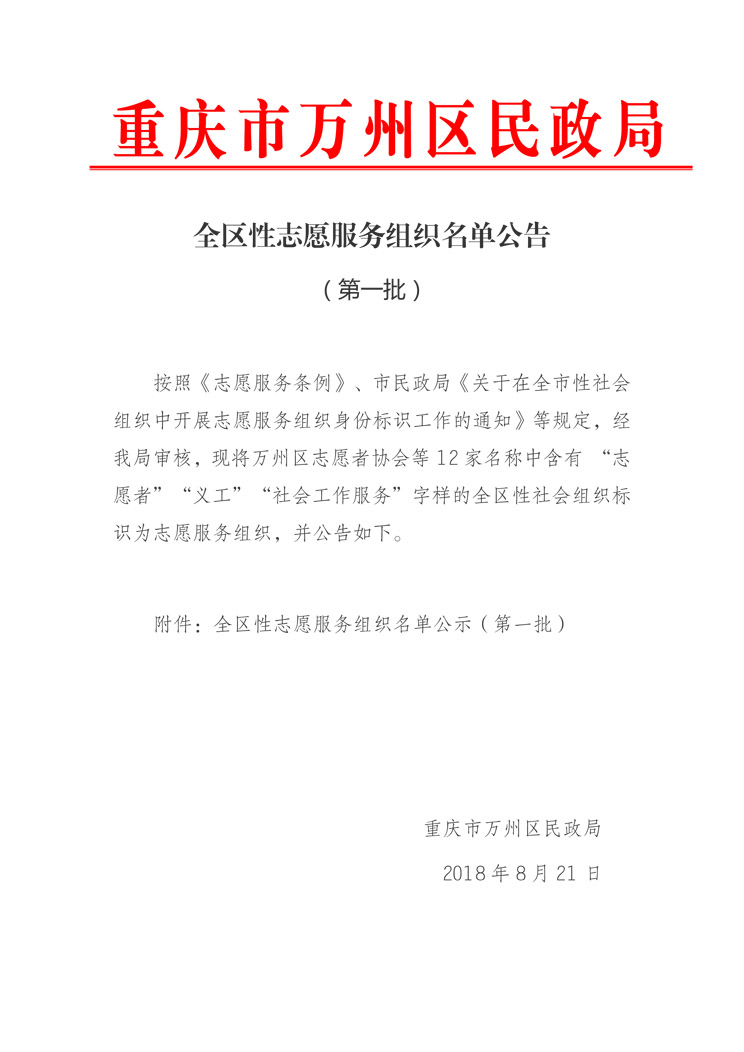 经万州区民政局认定为志愿服务组织。