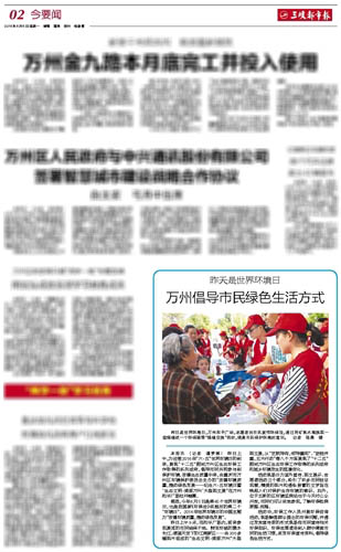 本报讯 (记者 谭梦娜) 昨日上午,为迎接2016年“六·五”世界环境日的到来,展现“十二五”期间万州区生态环保工作取得的系列成效,倡导市民共同参与到保护环境、改善生态质量中来,由重庆市万州区环境保护委员会主办的“改善环境质量,推动绿色发展——纪念六·五环境日暨‘生态文明·美丽万州’大型图文展”在万州和平广场拉开帷幕。