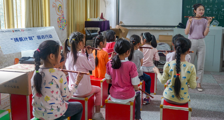 2019年,为万州的铁炉学校、太龙学校捐赠音乐器材(竖笛、口琴、手指钢琴、架子鼓、吉他、古筝、非洲鼓、横笛、唢呐、 手风琴、尤克里里、二胡等),助力音乐教室落地,培养学生兴趣,调节学生心理的情感情绪,使心灵趋于平和,提高自身的高度和宽度。