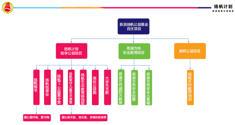 新浪扬帆公益基金是中华思源工程扶贫基金会理事基金,关注教育领域。“扬帆计划”是新浪扬帆公益基金项目品牌,旨在通过互联网平台捐助课外图书、举行夏令营、开办扬帆班、援助优秀教师等活动,帮助偏远贫困地区的孩子增长见识、开拓视野,增强他们建设家乡的使命感,最终培养一批改变中国未来农村命运的关键人才。